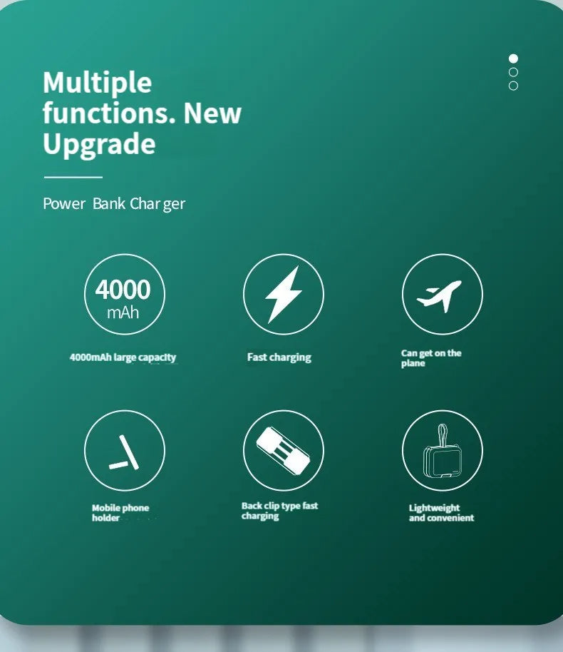 🔷 Liberté de Recharge : Ne craignez plus que la batterie de votre téléphone soit faible ! Avec la banque d'alimentation pliable sur support de 4 000 mAh, vous avez toujours de l'énergie à portée de main pour charger votre appareil n'importe où, n'importe quand, sans avoir à chercher une prise murale.