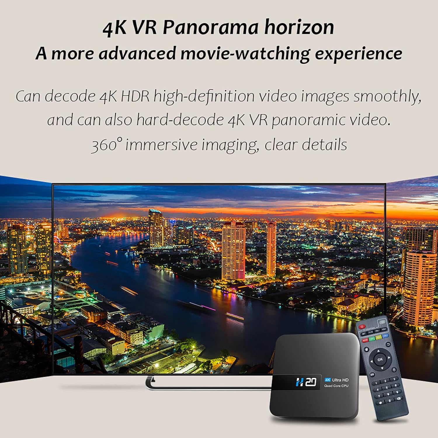 Le boîtier Smart TV H20PRO est équipé d'une technologie de pointe qui offre des performances inégalées grâce à un streaming 4K UHD fluide, avec une qualité d'image ultra claire qui fait ressortir chaque détail, vous permettant de vous immerger dans vos émissions, films et jeux préférés avec un visuel exceptionnel clarté.