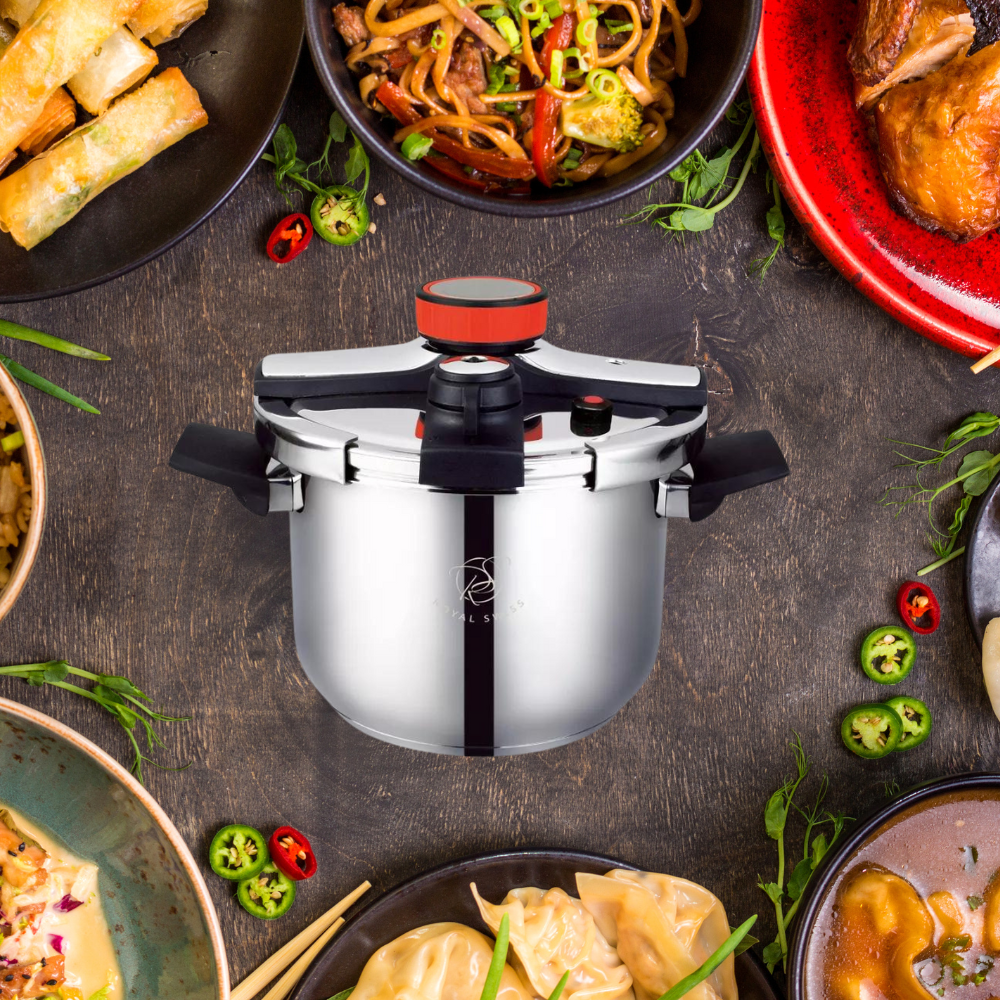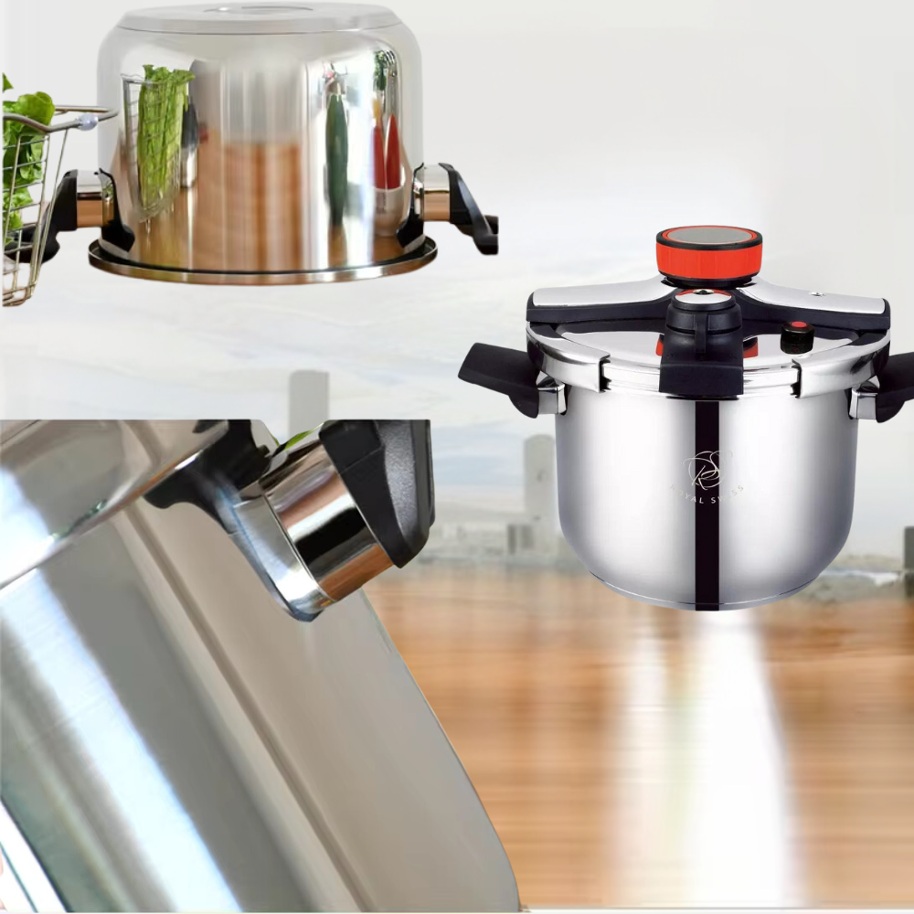 Notre autocuiseur est conçu avec des matériaux de haute qualité, avec une construction robuste en acier inoxydable qui garantit une longévité exceptionnelle, tandis que le système de verrouillage de sécurité assure une cuisson sous pression efficace et sûre.