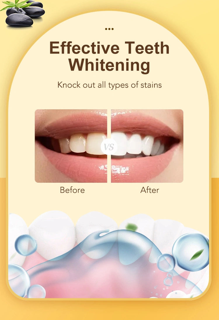 🌟 Blanchiment efficace : Le charbon actif élimine en douceur les taches de surface causées par le café, le thé, le vin rouge et autres colorants pour vous redonner confiance en vous avec un sourire radieux.