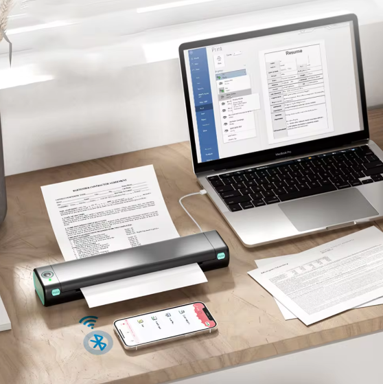 cette imprimante présente une conception compacte et légère, ce qui la rend idéale pour une utilisation n'importe où, Transportez-le dans votre poche ou votre sac et soyez prêt à imprimer vos documents facilement, à tout moment.