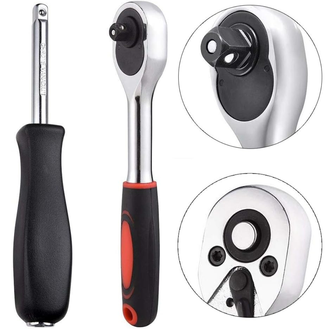 Polyvalent: Ce kit couvrira un large éventail de besoins en matière de réparation automobile, grâce à la variété d'outils, dont des douilles, des cliquets et des tournevis, que vous ayez besoin de serrer un boulon sous le capot, d'ajuster une pièce intérieure ou d'effectuer une réparation simple, ce kit contient tout ce dont vous avez besoin pour effectuer le travail en toute simplicité.