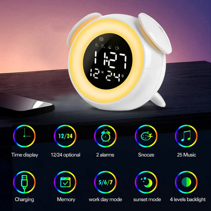 Offrez-vous une expérience de réveil pas comme les autres avec notre mini réveil pratique conçu pour propulser vos matins à un tout autre niveau, imaginez-vous sortant doucement du sommeil, avec une lumière douce qui imite le lever du soleil, vous préparant pour une journée prometteuse.