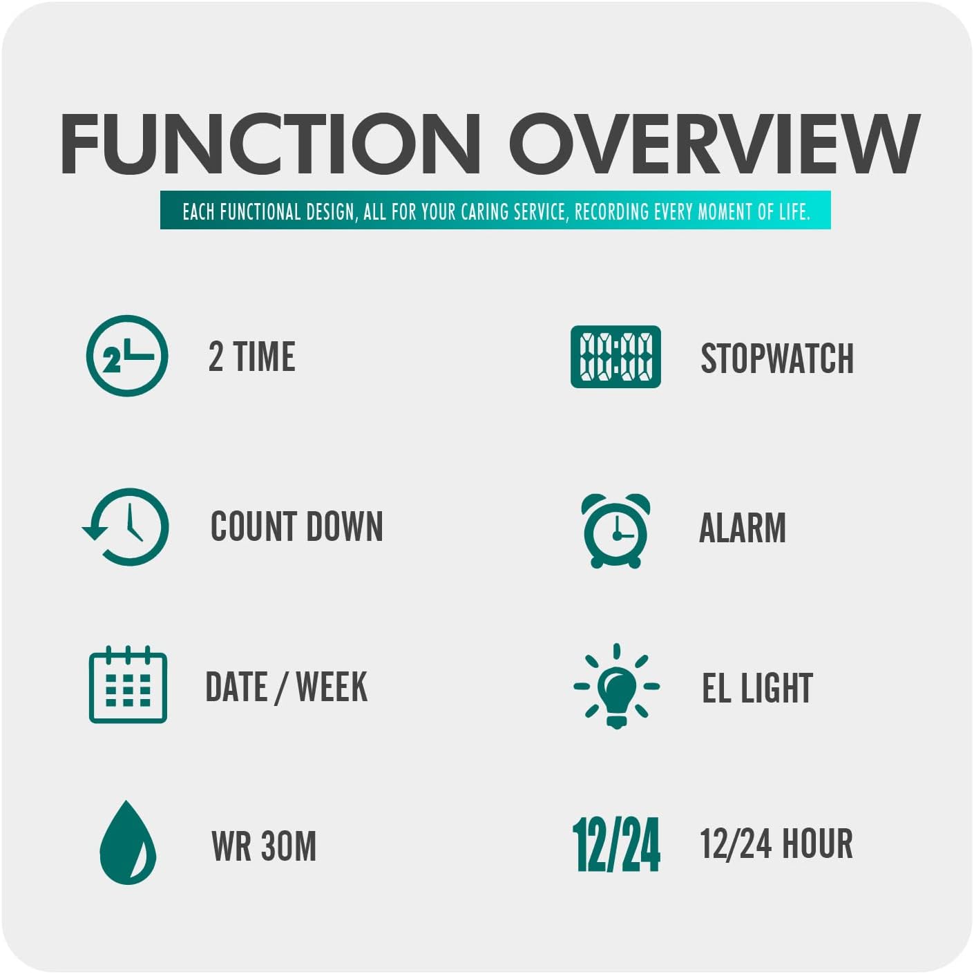 💦La résistance à l'eau le rend parfait pour toutes les activités, qu'il s'agisse de natation, de plongée ou simplement un jour de pluie, vous n'avez donc pas à vous soucier des conditions météorologiques, il est conçu pour résister à tout, et le rétroéclairage LED permet une lecture facile même dans le sombre, fait de cette montre un véritable outil multifonctions pour vous accompagner dans votre quotidien.