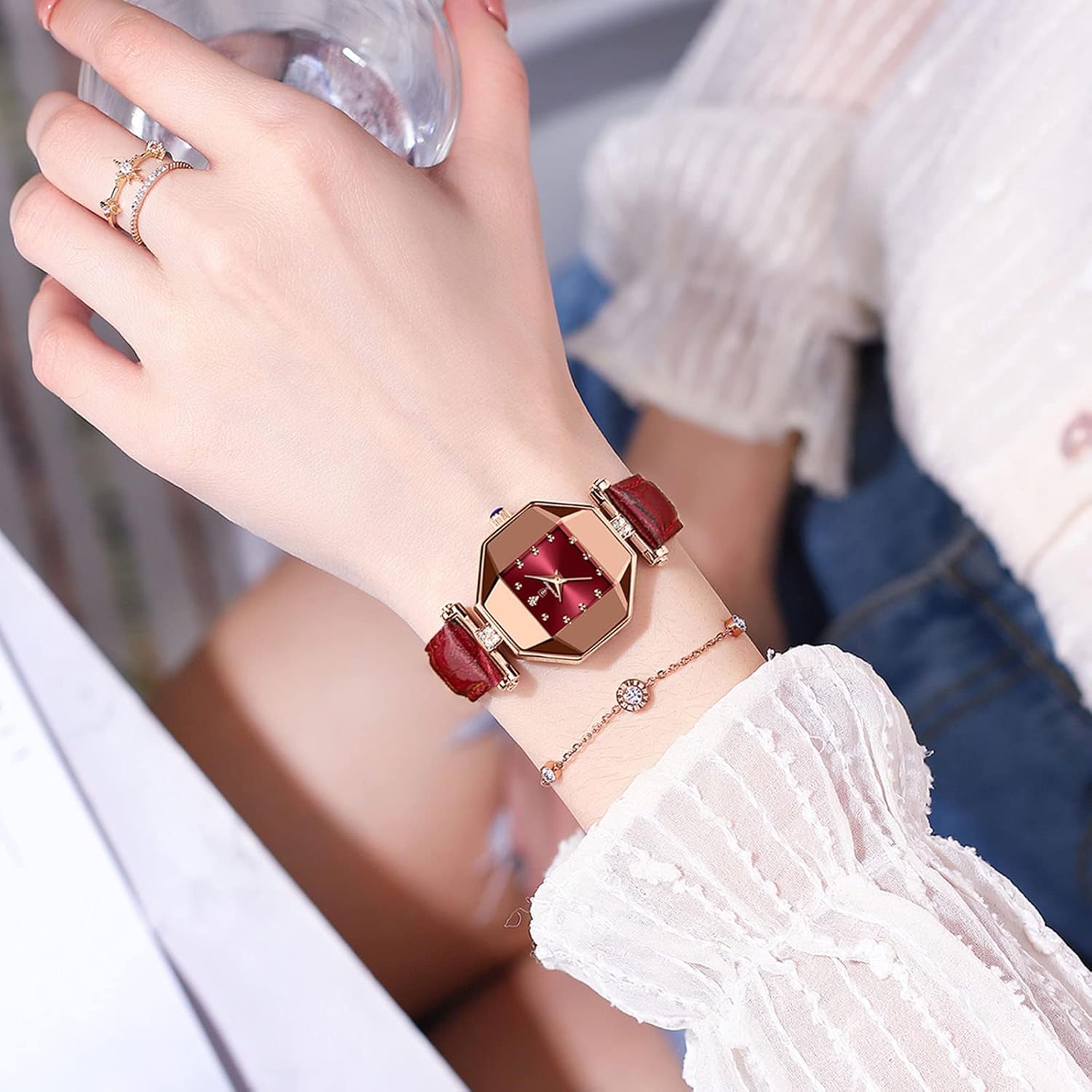 Soyez prêt à faire tourner les têtes avec cette pièce tendance, portez votre style à un tout nouveau niveau et ayez l'air élégant et de haute qualité avec cette montre à quartz de luxe pour femme. 🛒 Commandez aujourd'hui et laissez briller votre style.