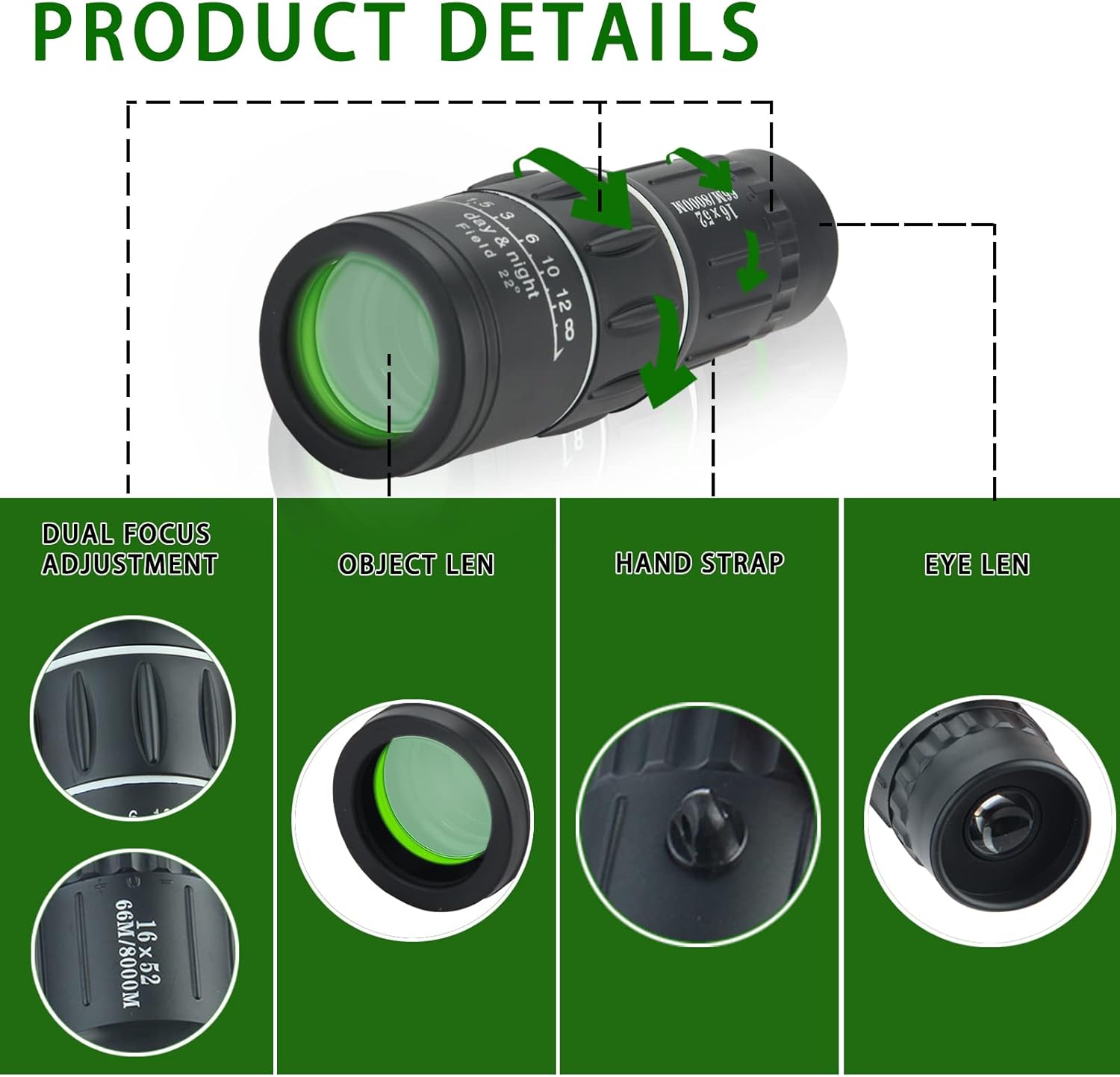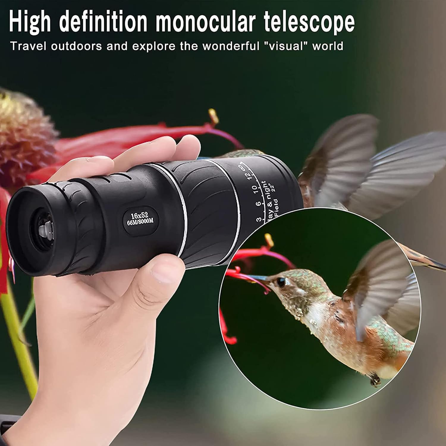 🔭🔎 Découvrez le monde sous un nouvel angle avec cet objectif à zoom optique double focalisation HD 16x52 haute puissance conçu pour les amateurs d'observation, les aventuriers de plein air et les amoureux de la nature 🌠👁🗨