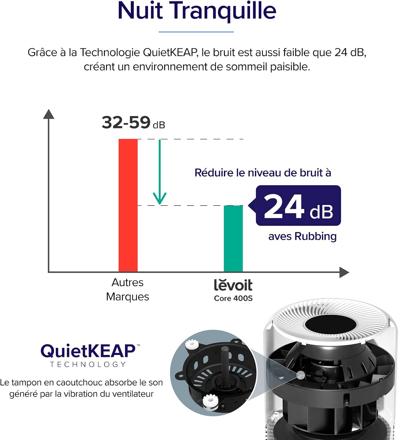 🌱 FONCTIONNEMENT SILENCIEUX : Sélectionnez le mode veille la nuit, puis oubliez tout votre purificateur d'air pendant que vous dormez grâce à la technologie QuietKEAP qui réduit les niveaux de bruit à environ 24 dB, garantissant un environnement calme pour travailler, dormir ou jouer.